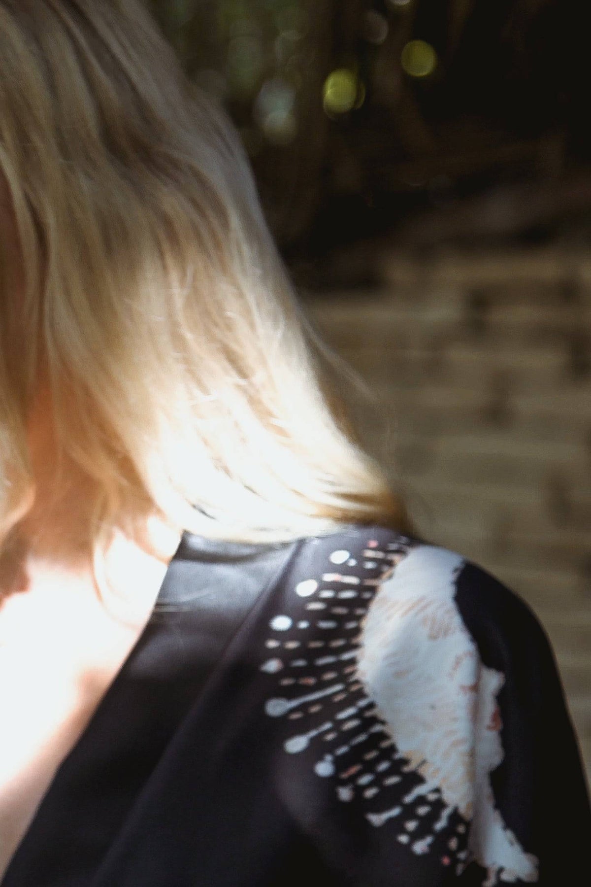 Introducing the The Royal Robe in Starry Night, a tailored, bespoke kimono crafted from lightweight silk. Perfect for Summer Fashion, this kimono combines elegance with comfort.