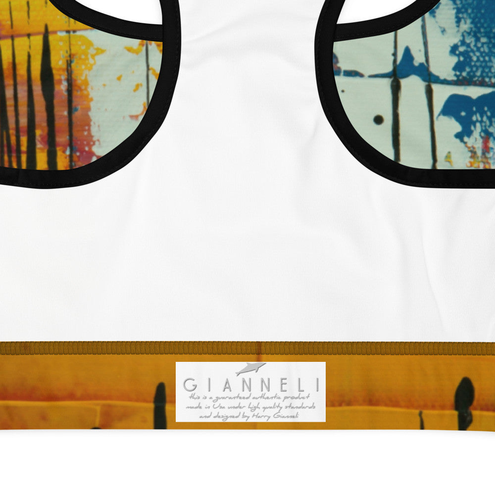 This gorgeous sports bra is made from moisture-wicking material that stays dry during low and medium intensity workouts. The bra has support material in the shoulder straps, double layer front, and a wide elastic band to ensure constant support.